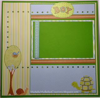 I used the Baby Boy Stack from DCWV. There are many pages in this stack where you can cut your own embellishments for your pages. I also applied some Stickles to the dot border. This is going to be a gift for someone.