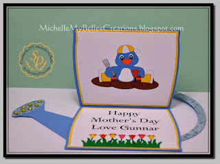 For the inside, I created shadow layers and printed out the gardening bird and tulips on some glossy paper. There is a slight glare from the bottom layer projecting onto the bird in the top layer. Sorry about that.