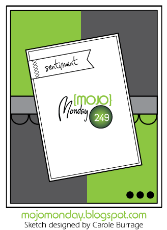 Today is sketch day, this weeks sketch is by Carole Burrage. Be sure to stop by the Mojo Monday Blog for some inspiration using their sketches. You will find some amazing card entries.