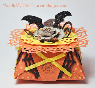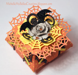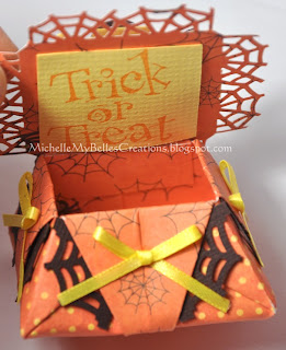 Made some yellow bows for the outside flaps of the box. I punched out 8 web corners and tucked them inside the flaps.