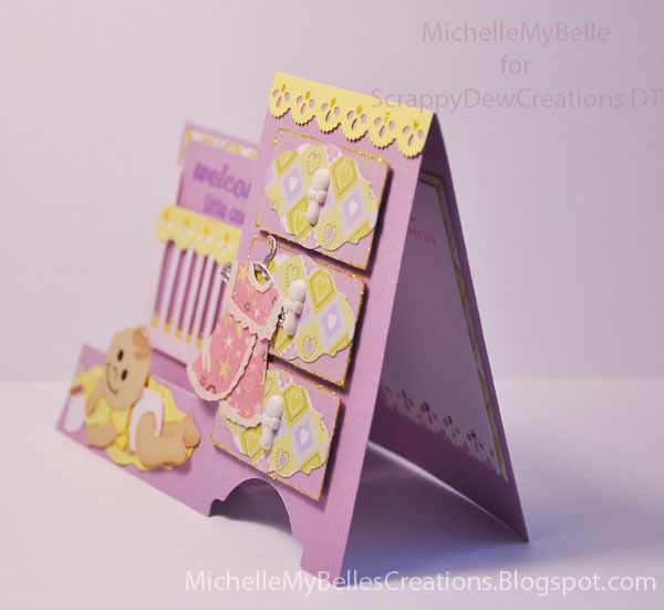 I used ScrappyDew Little Babyz pattern file from the ScrappyDew Vault to create my Side Step card project.